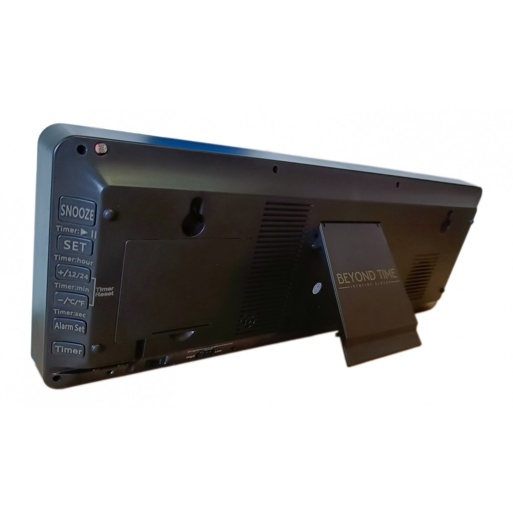 Eine große und stilvolle schwarze Digitalwanduhr mit roten LED-Ziffern. Einfache Montage an der Wand oder auf einem Tisch (mit ausklappbarem Ständer). Die LED-Leuchten sind weithin sichtbar, sodass sich die Uhr auch hervorragend in Schulen und anderen öffentlichen Gebäuden eignet (perfekte Uhr für Padel-Plätze). Nachfolgend finden Sie alle Vorteile und Funktionen der Uhr.