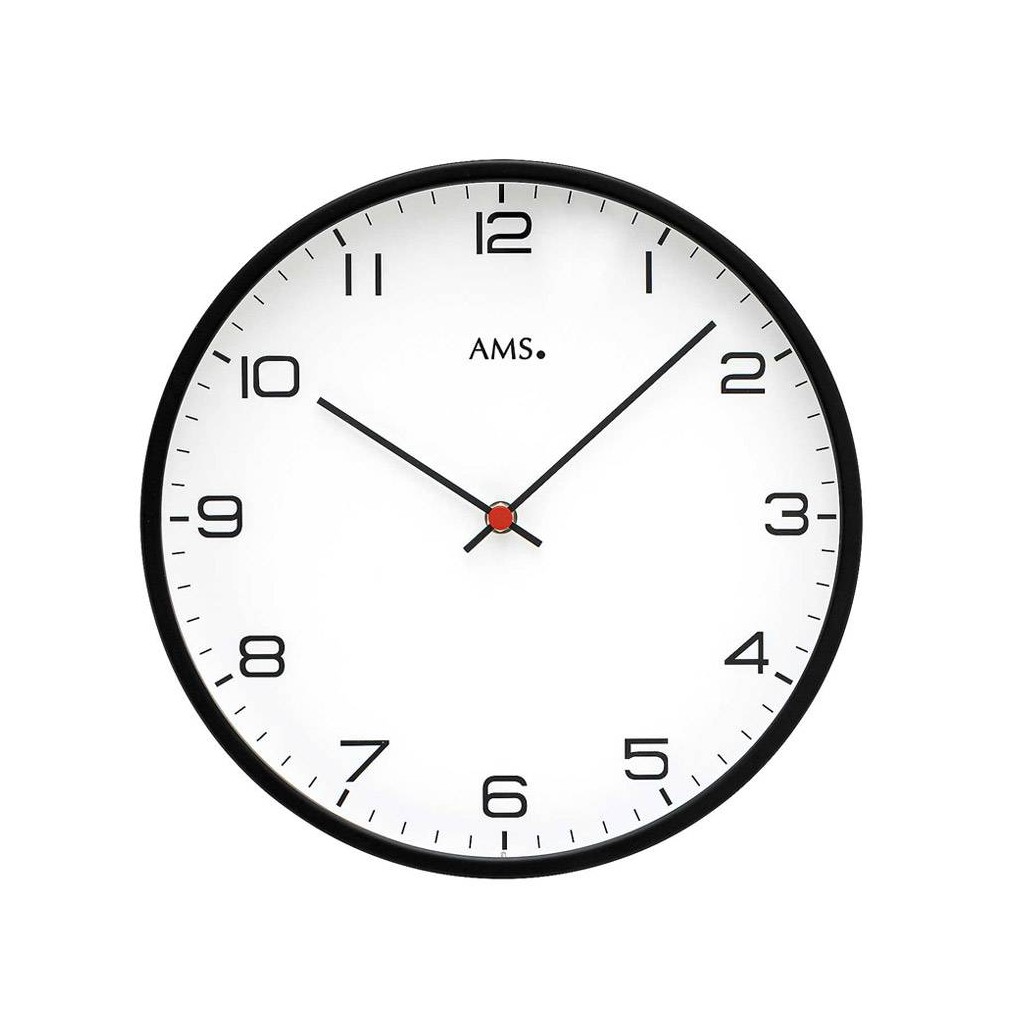 Die Wanduhr 9659 von AMS ist ein trendiges Einrichtungsdetail in minimalistischem Design für das moderne Zuhause - oder das designbewusste Büro. Schwarzer Rahmen und weißes Zifferblatt.