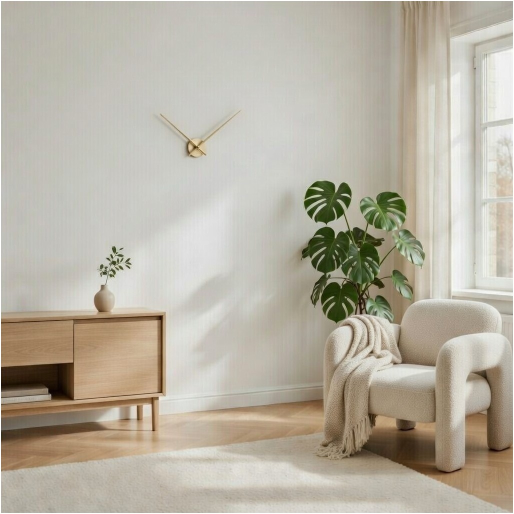 Hands Mini Gold ist eine elegante Wanduhr mit ausschließlich Zeigern aus Metall.